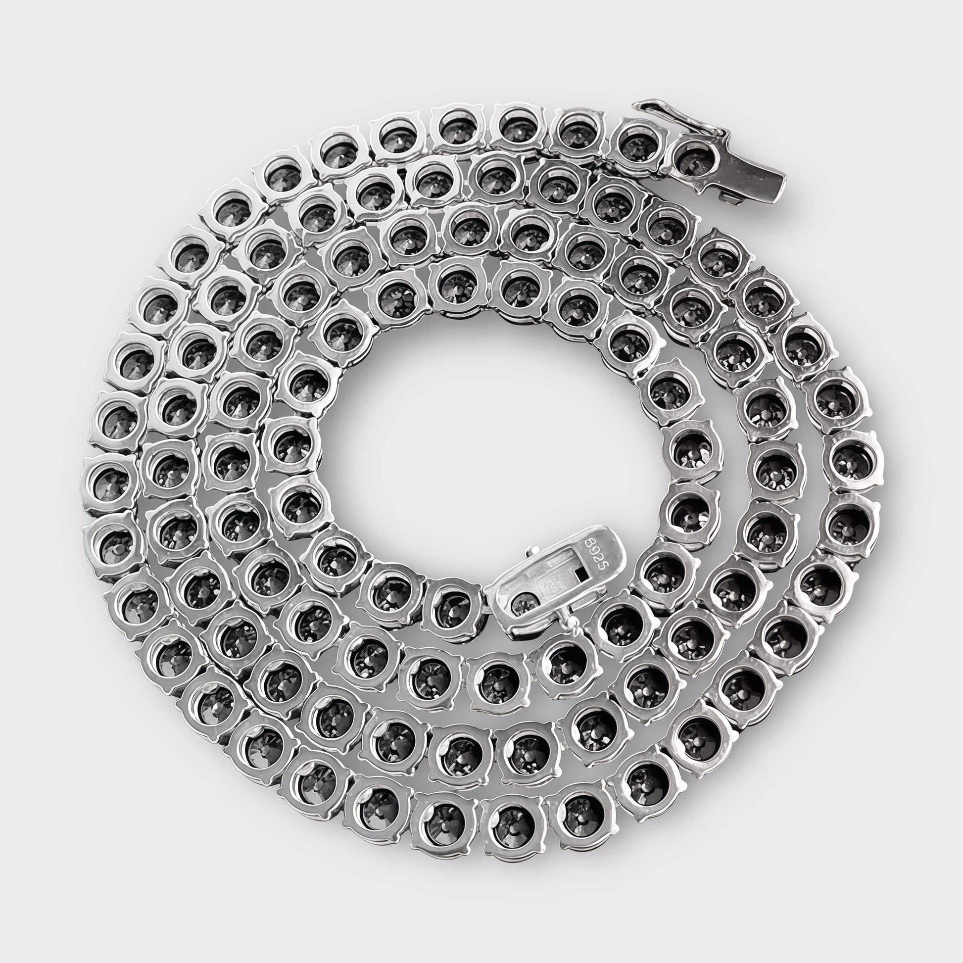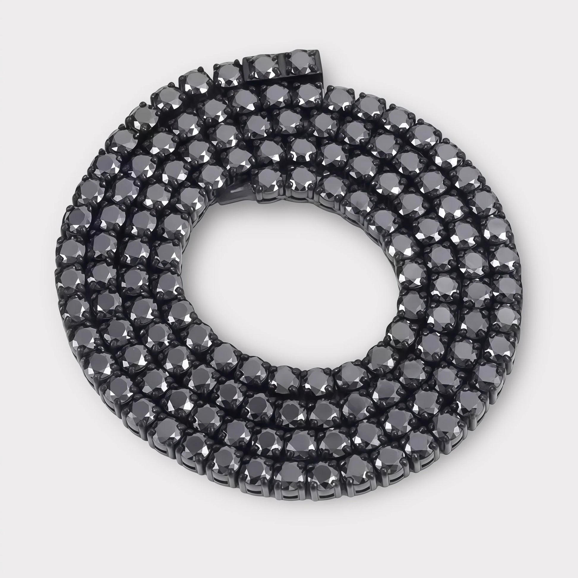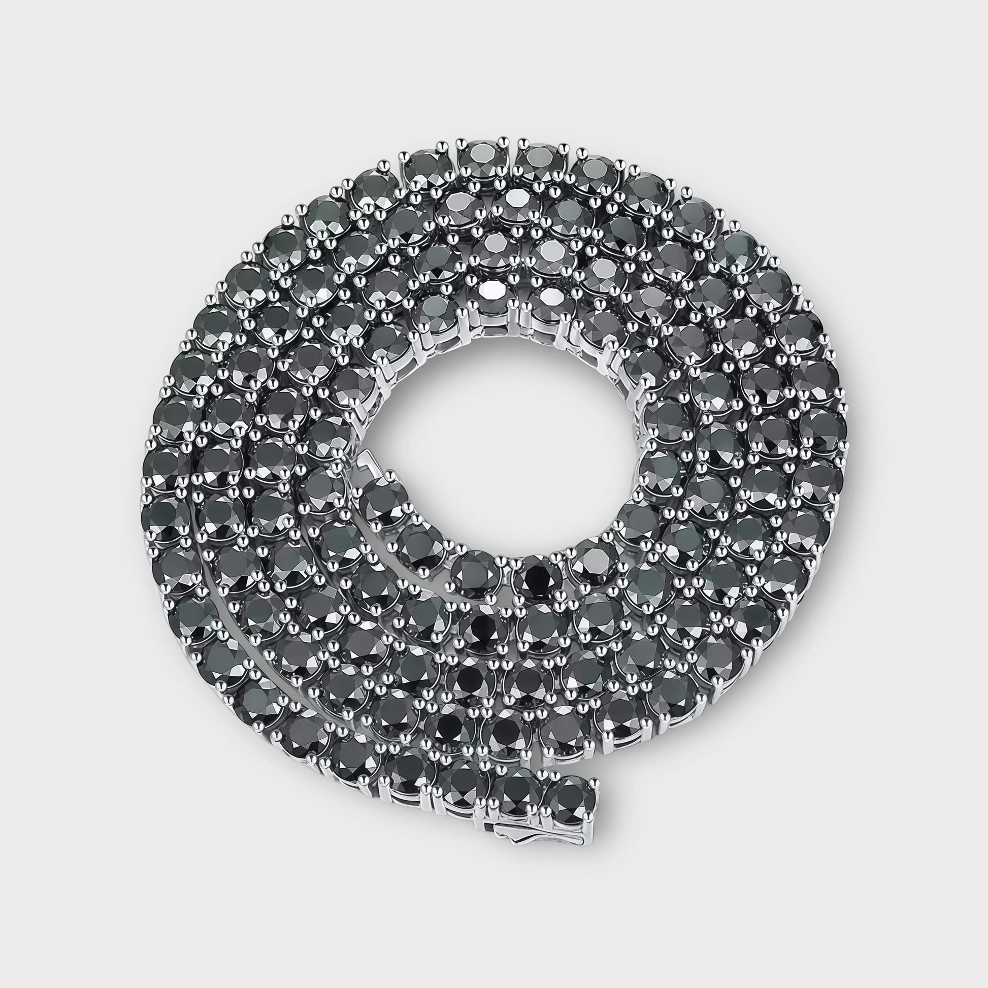 Step into bold luxury with our Black Moissanite Tennis Chain, a statement piece crafted to turn heads from every angle. Each link is handset with premium black moissanite stones, offering the brilliance and fire of diamonds but with a deeper, more mysterious edge. The dark gleam of the moissanite contrasts perfectly against its sleek metal setting, creating a modern and powerful aesthetic that commands attention.