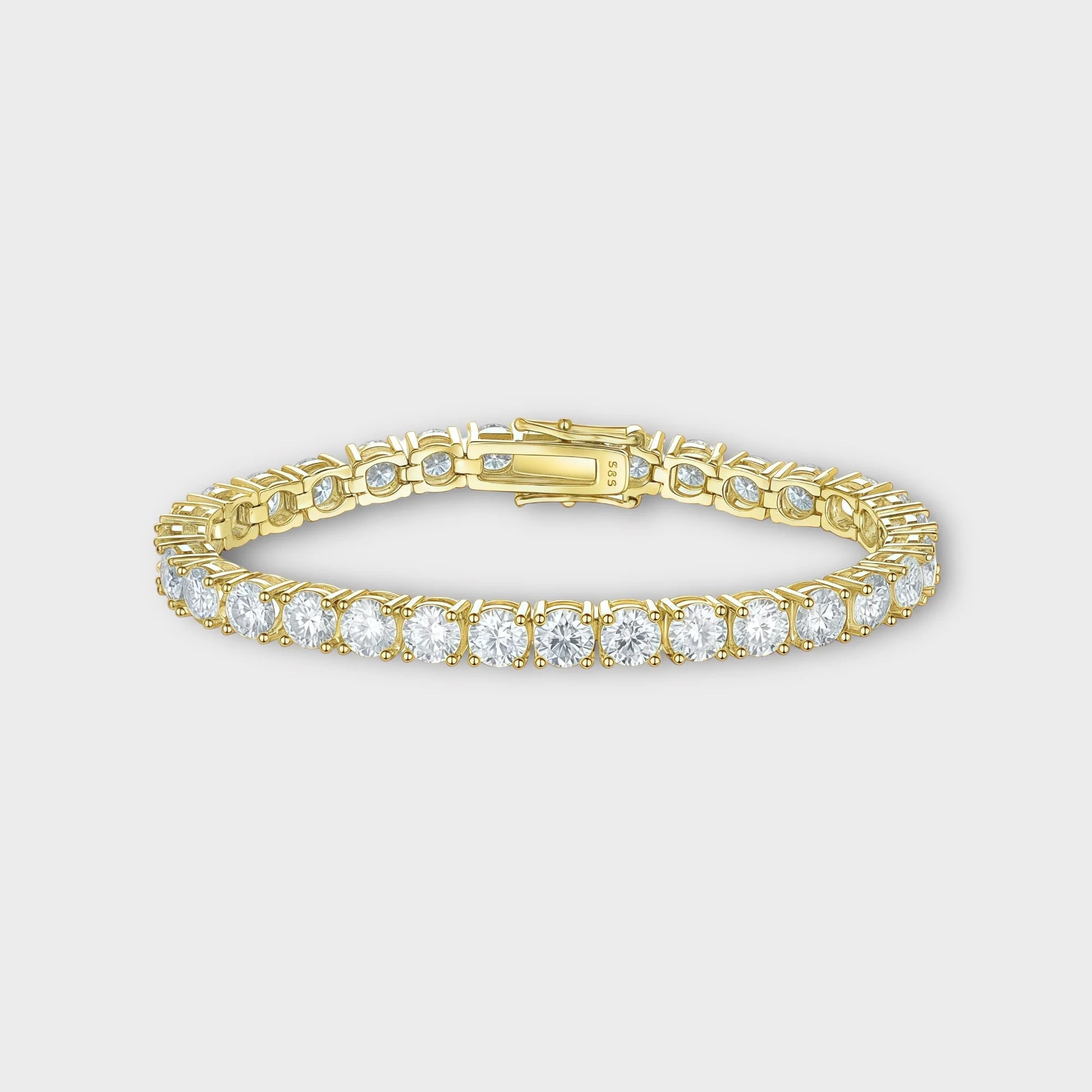 Elevate your wrist with timeless brilliance. Our Moissanite Tennis Bracelet is crafted to perfection, featuring a seamless line of hand-set moissanite stones that radiate more fire and sparkle than natural diamonds. Each stone is meticulously placed in a durable 925 sterling silver or 18K gold vermeil setting, offering a luxurious shine that lasts.