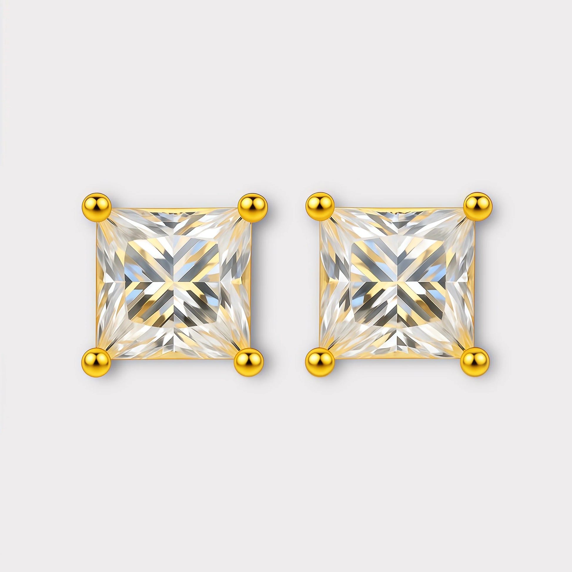 Elevate your everyday look with timeless brilliance. These Princess Cut Moissanite Stud Earrings feature precision-cut stones that radiate exceptional fire and clarity, capturing the light from every angle. Set in premium 925 sterling silver, available in both white gold and yellow gold finishes, these studs bring elegance and confidence to any occasion.